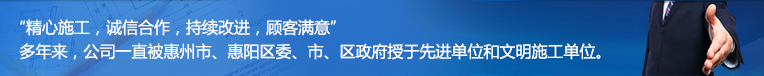 惠州市東江建筑安裝工程有限公司始建于1983年,于2010年改制成為股份制企業(yè),具有37年建安施工歷程。具有房屋建筑工程施工總承包一級(jí)、市政公用工程施工總承包二級(jí)、建筑裝修裝飾工程專(zhuān)業(yè)承包二級(jí)、電子與智能化工程專(zhuān)業(yè)承包二級(jí)、古建筑工程專(zhuān)業(yè)承包三級(jí)、建筑機(jī)電安裝工程專(zhuān)業(yè)承包三級(jí)、城市園林綠化工程施工二級(jí),并通過(guò)ISO9002國(guó)際質(zhì)量體系認(rèn)證。